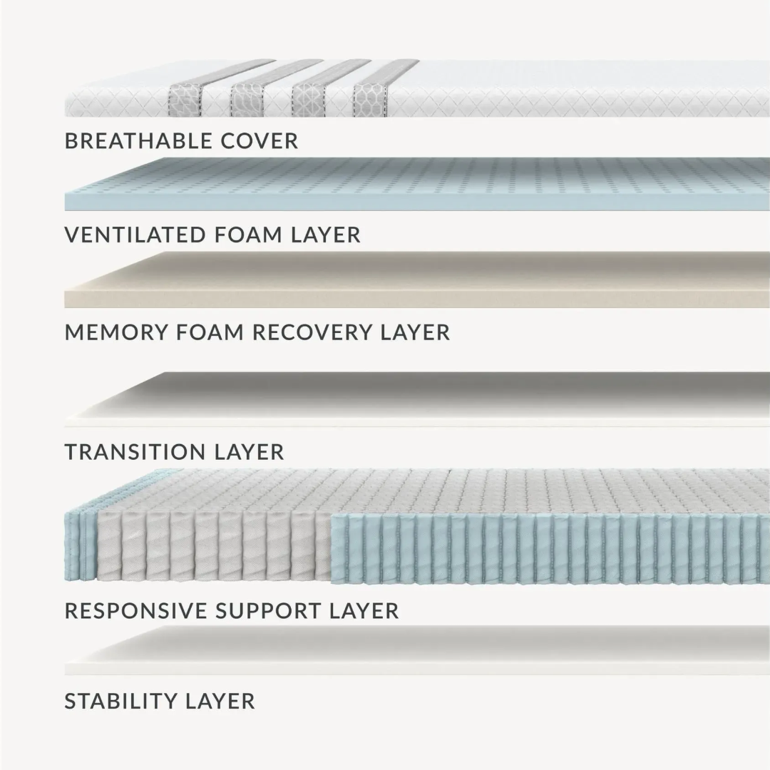 - Two premium foam layers that respond to movement while providing pressure relief.