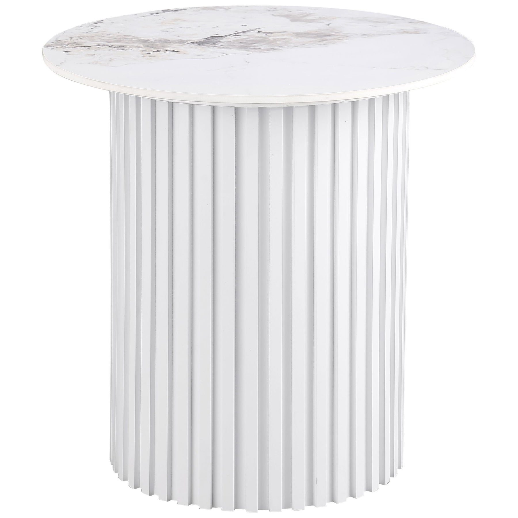 Rowena - Round Sintered Stone End Table - White Faux Marble