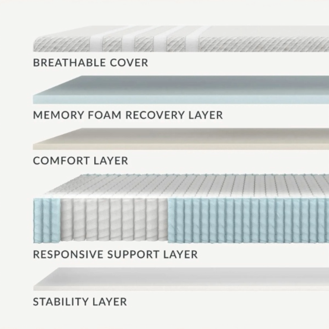 - A responsive top foam layer contours to your body for comfortable alignment and deeper sleep.
