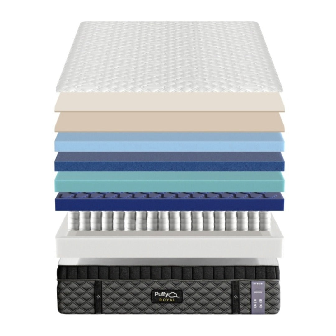 The Royal Treatment: Targeted Support & Ultra-Plush Comfort Step up to the Puffy Royal Hybrid, a 14-inch masterpiece designed for sleepers who refuse to compromise. While the Lux is a great all-rounder, the Royal is precision-engineered. It features a unique 5-Zone Support System that varies the firmness across the mattress—softer under your head and legs, but firmer under your hips and lower back.
