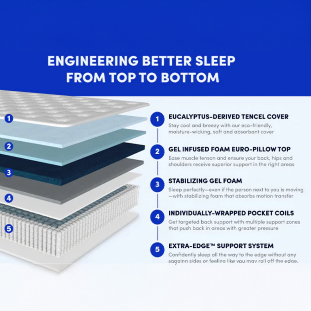Extra-Edge™ Support: A reinforced perimeter allows you to sleep all the way to the edge without rolling off.